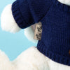 Mei Mei measures 10" tall. She is crafted using polyester fiber, her sweater is knitted with acrylic and she is cocooned in a linen cotton bag, designed to keep her safe from the elements.