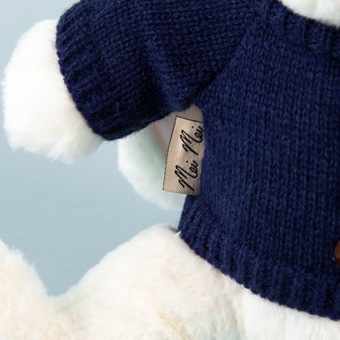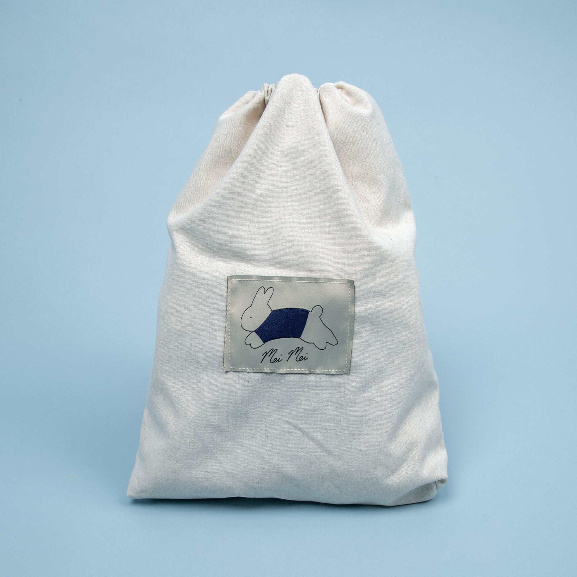 Please don't put Mei Mei in the washing machine. Hand-washing in cool water and air-drying is the way to go if you happen to spill on her or drop her in a puddle!